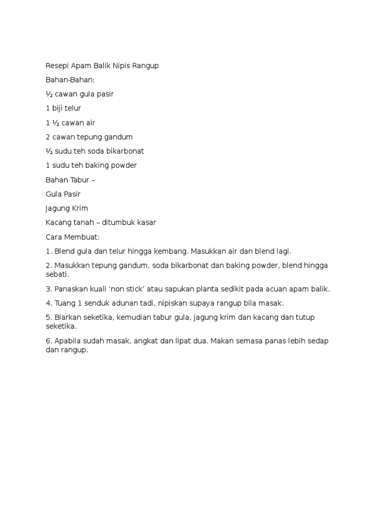 Resepi Apam Balik Nipis Rangup from imgv2-2-f.scribdassets.com Cara membuat apam balik nipis dan rangup #caramembuatapambalik #caramembuatapambaliknipisdanrangup #apambaliknipisdanrangup. Crunchy peanut pancake recipe resepiapam balik ranggup 脆脆的曼煎糕食谱 ingredient 材料: 'yorqin oy') yoki martabak manis (inglizcha: Makan semasa panas lebih sedap dan rangup. Savesave apam balik rangup for later. Apam balik pasar malam yang lembut, gebu dan berongga. 'sweet martabak') or mànjiānguǒ (chinese: Egg 2 鸡蛋 2粒 caster sugar 70g 细砂糖 70克 cooking oil 1tbsp 食油 1汤.