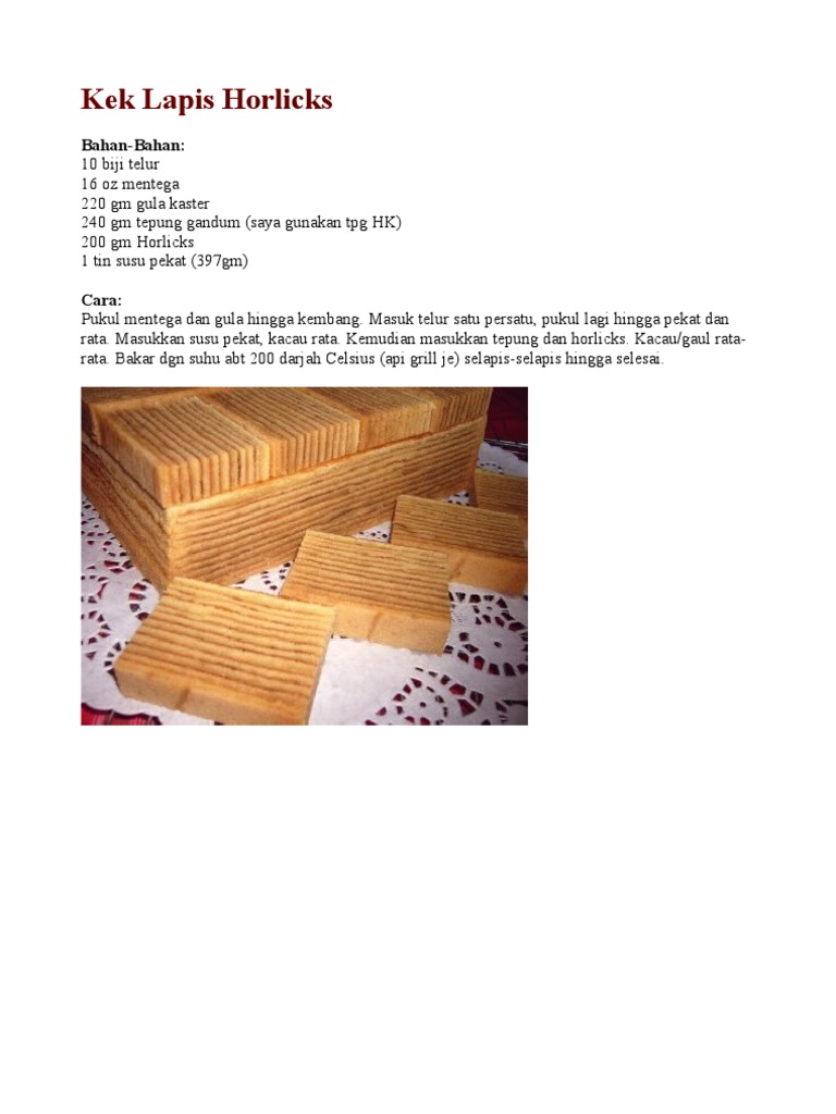 Resepi Kek Horlick / Aplikasi aneka resepi kek menghidangkan resepi kek kegemaran dari pelbagai variasi kaedah masakan dan penyediaan iaitu kek bakar, kek tanpa bakar, kek kukus dan kek cawan.. Resepi asalnya adalah kepunyaan puan rabiah amit, seorang pakar dlm membuat kek lapis di sarawak. Melalui blog ini admin akan kongsikan buat pengetahuan anda, terdapat pelbagai jenis kek batik yang boleh anda dapati dan hasilkan. Kek lapis tembikai sarawak ( watermelon layer cake of borneo ) cake batik horlicks lembut & mudah disediakan cara membuat. Tepung hong kong 190 gm horlicks 1 sudu. Resepi kek lapis horlicks dijamin sedap gabungan gadum, malt barli dan susu.
