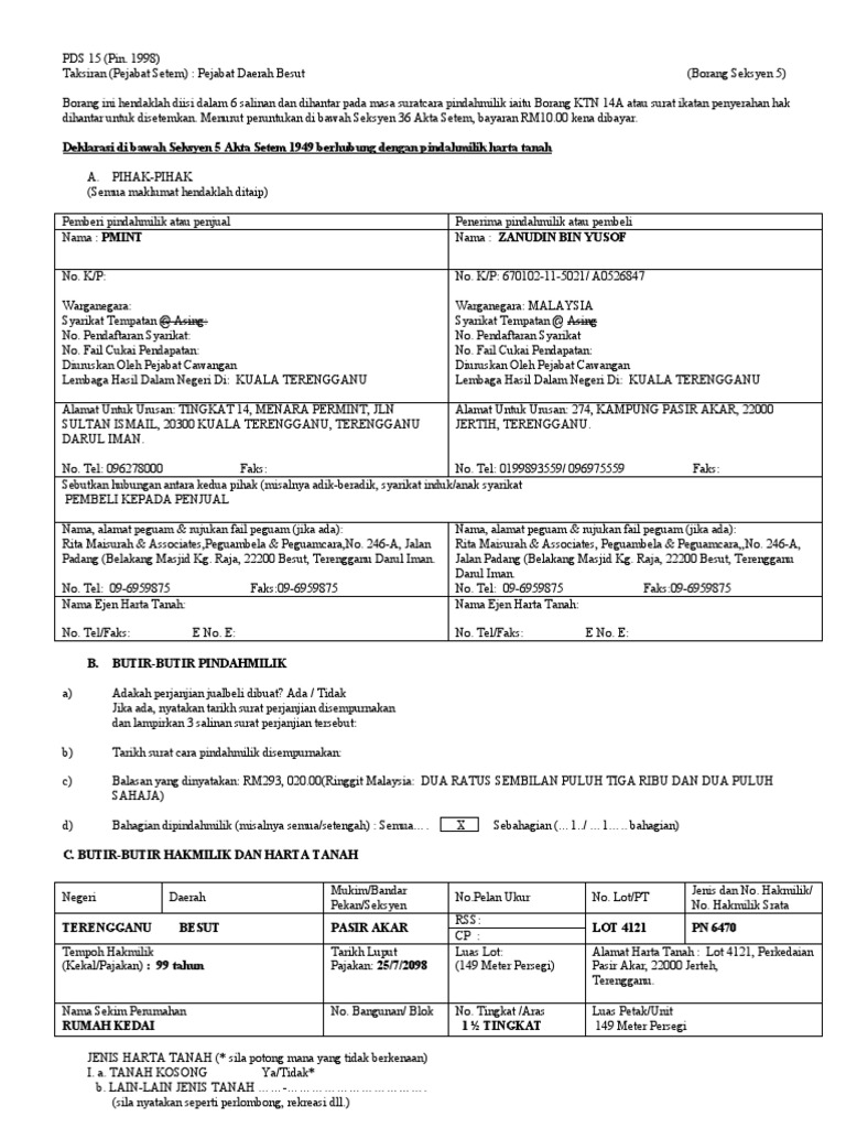 Contoh isi borang 14a pindah milik tanah.