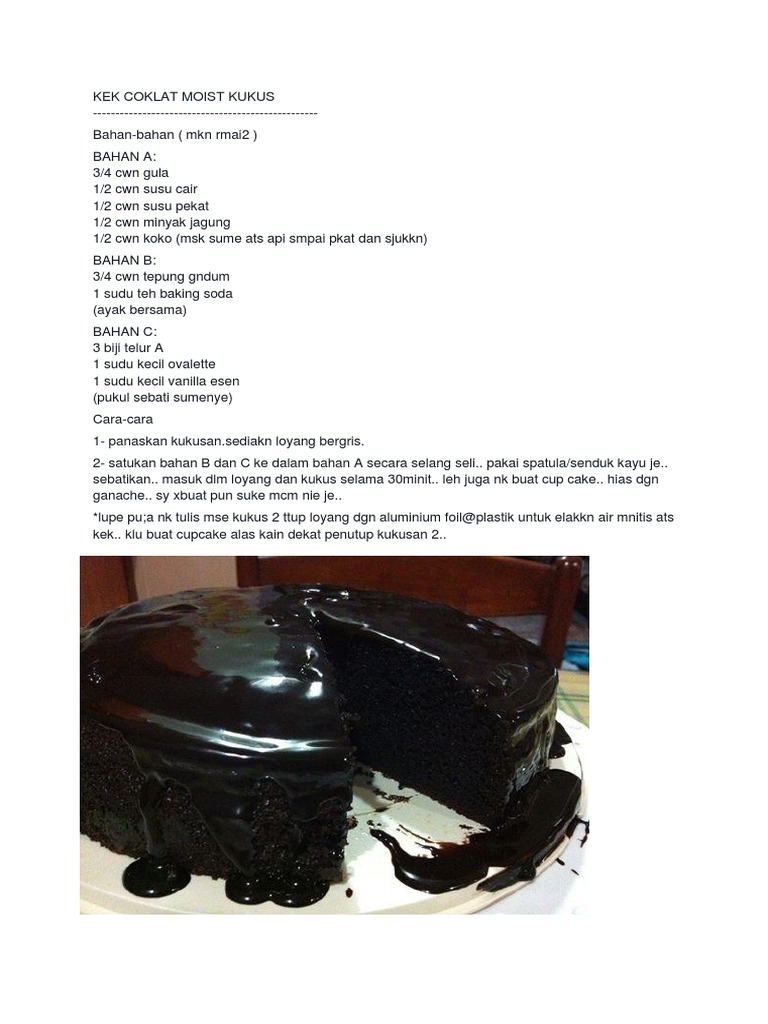 Bagi anda yang nak cuba buat kek coklat mpoist yang kurang manis, resipi perkongsian saudari. Sempena musim durian ni jom kita bela. More images for kek coklat moist kukus » 2 days ago · kek & biskut. Kalau anda mahu mencuba boleh ikut resepi kek ini.
