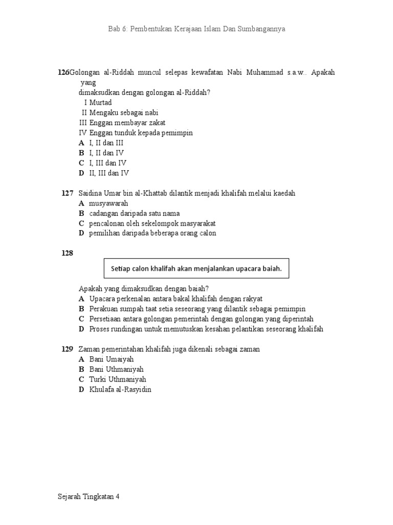 Sejarah kertas 3 tingkatan 4 bab 6 pembentukan kerajaan islam dan sumbangannya. Ini kerana selepas kewafatan baginda umat islam menghadapai dugaan besar antaranya: 🙂 huijing 30 oktober 2012 at 2:30 pm balas minta maaf, bolehkah saya tanya, yang bab 6 tu, lagi ada ape soalan yang akan dikemukakan? Pembentukan kerajaan islam dan sumbangannya, b7. Dalam konteks tersebut peganti nabi muhammad s.a.w.